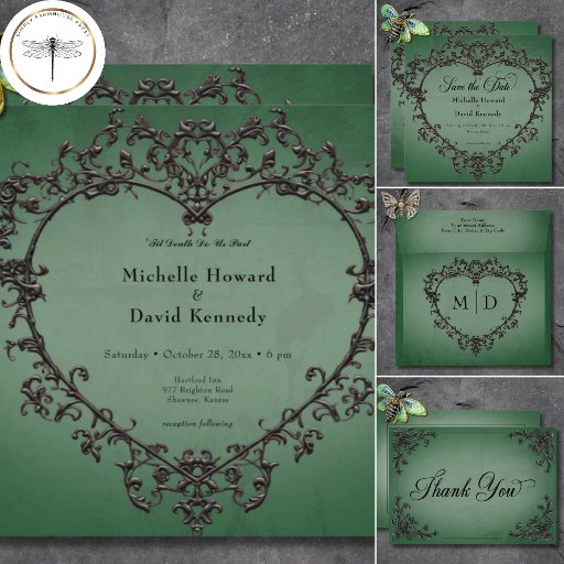 Gothic Black & Green Filigree Heart WeddingDesignad av Kathe Santillo