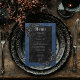 Transportera dina gäster till en värld av mörk, och njuta av elegans med vårt vintage gothic bröllop-menykort. Den djupa, åldras royalet blå bakgrund och svart ro anger scenen för en slående kontrast, eftersom fetstilt vit text kommer från komplicerade svarta textrutor. Baksidan är försedd med två sammanflätade vindruvor av svart ro samt parets datum initialer och bröllop, vilket tillför en aning dramatisk allure. Släpp magin och ange tonen för en oförglömlig bröllopsdag. Detta kort är en del av det som Skapats av enbart Farmhouse Press.