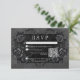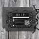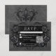 Transportera dina gäster till en värld av mörk, och njuta av elegans med vårt vintage gothic bröllop-svarskort med QR-kod. Den djupa, svarta bakgrunden för åldras anger scenen för en slående kontrast, eftersom fetstil för vit text kommer från komplicerade svarta textrutor. I höjdpunkten på inbjudan fångas det centrala i mystik och romantik av en tredimensionell gothisk gräns med en regal svart korv. Baksidan är försedd med två sammanflätade vindruvor av svart ro som subtilt bildar ett hjärta runt två omfamnande ravens, vilket tillför en aning dramatisk allure. Släpp magin och ange tonen för en oförglömlig bröllopsdag. Kortet är en del av Gothic Black Raven & Black Ro Bröllop Suite skapat av enbart Farmhouse Press.