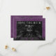 Transportera dina gäster till en värld av mörk, och hänföra elegans med vårt vintage gothic bröllop spara datum kort. Den djupa bakgrunden för lila av åldras anger scenen för en slående kontrast, eftersom fetstilt vit text kommer från komplicerade svarta textrutor. I höjdpunkten på inbjudan fångas det centrala i mystik och romantik av en tredimensionell gothisk gräns med en regal svart korv. Baksidan är försedd med två sammanflätade vindruvor av svart ro som subtilt bildar ett hjärta runt två omfamnande ravens, vilket tillför en aning dramatisk allure. Släpp magin och ange tonen för en oförglömlig bröllopsdag. Kortet är en del av Gothic Black Raven & Black Ro Bröllop Suite skapat av enbart Farmhouse Press.