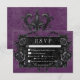 Transportera dina gäster till en värld av mörk, och njuta av elegans med vårt vintage gothic bröllop-svarskort. Den djupa bakgrunden för lila av åldras anger scenen för en slående kontrast, eftersom fetstilt vit text kommer från komplicerade svarta textrutor. I höjdpunkten på inbjudan fångas det centrala i mystik och romantik av en tredimensionell gothisk gräns med en regal svart korv. Baksidan är försedd med två sammanflätade vindruvor av svart ro som subtilt bildar ett hjärta runt två omfamnande ravens, vilket tillför en aning dramatisk allure. Släpp magin och ange tonen för en oförglömlig bröllopsdag. Kortet är en del av Gothic Black Raven & Black Ro Bröllop Suite skapat av enbart Farmhouse Press.
