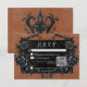 Transportera dina gäster till en värld av mörk, och njuta av elegans med vårt vintage gothic bröllop-svarskort med QR-kod. Den djupa, rosta bakgrunden till åldrasen anger scenen för en slående kontrast, eftersom fetstil, vit text kommer från komplicerade svarta textrutor. I höjdpunkten på inbjudan fångas det centrala i mystik och romantik av en tredimensionell gothisk gräns med en regal svart korv. Baksidan är försedd med två sammanflätade vindruvor av svart ro som subtilt bildar ett hjärta runt två omfamnande ravens, vilket tillför en aning dramatisk allure. Släpp magin och ange tonen för en oförglömlig bröllopsdag. Kortet är en del av Gothic Black Raven & Black Ro Bröllop Suite skapat av enbart Farmhouse Press.