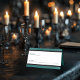 Transport dina gäster till en värld av mörk, elegans med våra vintage gothic bröllop-platskort. Den djupa grönten för teal-åldras anger scenen för en slående kontrast, eftersom en fet vit text kommer från en okomplicerad svart kontur och grått kontur. På baksidan av denna konstruktion fångar en tredimensionell gotisk filigree gräns med två svarta ravens kärnan av mysteriet och romantik. Släpp magin och ange tonen för en oförglömlig bröllopsdag. Skapat av Farmhouse Press.