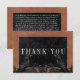 Transporter dina gäster till en värld av mörk, förtrollande elegans med vårt vintage gotiska tackkort för bröllop. Den djupa, åldriga brända orange rostfärgade bakgrunden sätter scenen för en slående kontrast, då fet vit text framträder från invecklade svarta textrutor. Högst upp på denna inbjudan fångar en tredimensionell gotisk ram dekorerad med en kunglig svart korp essensen av mystik och romantik. Baksidan är prydd med två sammanflätade vinrankor av svarta rosor som subtilt formar ett hjärta runt två omfammande korpar, vilket ger en dramatisk allure. Släpp lös magin och sätt tonen för en oförglömlig bröllopsdag. Detta kort är en del av det gotiska bröllopspaketet "Black Raven
