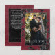 Transport your guests to a world of dark, enchanting elegance with our vintage gothic wedding photo thank you card. The deep, aged burgundy wine background sets the stage for a striking contrast for the white text. Your photo takes center stage, surrounded by intertwining vines of black roses, which captures the essence of mystery and romance. Unleash the magic and set the tone for an unforgettable wedding day. Created by Simply Farmhouse Press.