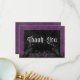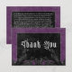 Transportera dina gäster till en värld av mörk och hänföra elegans med vår vintage gothic bröllop tack du kort. Den djupa bakgrunden för lila av åldras anger scenen för en slående kontrast, eftersom fetstilt vit text kommer från komplicerade svarta textrutor. Tredimensionellt gotskt inslag adorn designen, som fångar kärnan av mysteriet och romantik. Släpp magin och ange tonen för en oförglömlig bröllopsdag. Skapat av Farmhouse Press.