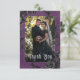 Transportera dina gäster till en värld av mörk och hänföra elegans med vår vintage gothic bröllop tack du kort. Den djupa bakgrunden för lila av åldras anger scenen för en slående kontrast, eftersom fetstilt vit text kommer från komplicerade svarta textrutor. Tredimensionellt gotskt inslag adorn designen, som fångar kärnan av mysteriet och romantik. Släpp magin och ange tonen för en oförglömlig bröllopsdag. Skapat av Farmhouse Press.