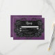 Transport your guests to a world of dark, enchanting elegance with our vintage gothic wedding response card with a QR code on the back. The deep, aged purple background sets the stage for a striking contrast, as bold white text emerges from intricate black text boxes. Three-dimensional gothic elements adorn the design, capturing the essence of mystery and romance. Unleash the magic and set the tone for an unforgettable wedding day. Created by Simply Farmhouse Press.