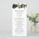Gott bröllopsprogram med illustration av svart ro på vit bakgrund. Alla ceremonier i bröllop och bröllopsfestens namn som finns med på detta program. Perfekt för en halloween bröllop.