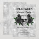 Gothic Black Ro & Skull Halloween Dinner Party-inbjudan.