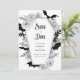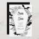 Bygg upp förtjusningen med den här inbjudan från Gothic Bröllop spara datum, perfekt för Halloween bröllop. Denna moderna, elegant-design kombinerar en bioestetisk mörk med en moody, spooky vibe, som fångar kärnan av ett firande i oktober. Den här inbjudan, som är imponerande förtjust i motiven för fladdermus och spindelnät, visar vid sidan av den ömtåliga blommigten inslag en slående svart-vit palett för färg. Ange tonen för din speciella dag med en unik blandning av hemlig skönhet och elegans.