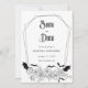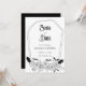 Bygg upp förtjusningen med den här inbjudan från Gothic Bröllop spara datum, perfekt för Halloween bröllop. Denna moderna, elegant-design kombinerar en bioestetisk mörk med en moody, spooky vibe, som fångar kärnan av ett firande i oktober. Den här inbjudan, som är imponerande förtjust i motiven för fladdermus och spindelnät, visar vid sidan av den ömtåliga blommigten inslag en slående svart-vit palett för färg. Ange tonen för din speciella dag med en unik blandning av hemlig skönhet och elegans.