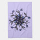 Kökshandduk av gotisk blommigt med coola konstig mandala illustration - digitalt färgad bläck teckning av en främmande blomma med reptilmonster med vassa tänder i svart, violett och blått färg.