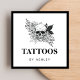 Gothic Blommigt Skull Black & White Tattoo Artist Fyrkantigt Visitkort