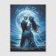 This romantic gothic wedding save the date announcement magnetic card features a blue skeleton couple dressed in wedding attire standing in front of the moon and ocean beach with your names and wedding date to personalize . Image generated with AI.