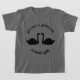 Blomflickan som skjortor har en digital bild av ett par vackert svart svanar som är vänt mot varandra och tittar som om de kysser varandra. De är svarta med rött ögon och slag. Det finns anpassningsbar så att du kan ta med namn från paret lycklig och datumet Bröllop.