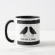 Fantastisk i mugg har en digital konst av ett par vackra, svarta ravens som är riktade mot varandra och tittar som om de kysser varandra. De är svarta med ögon och grått-näbbar och fötter. Det finns också vita stjärnor på en svart bakgrund ovanför och under fåglarna. Det finns anpassningsbar så att du kan ta med namn från paret lycklig.