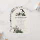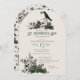 Den här elegant gothic St. Patrick's Day firande-inbjudan innehåller handritade irländska och gotiska temaillustrationer i svart bläck, med två döskallar och en svart kråka med grönt ro, löv, bär, vilda blommor och grönt klöver. Baksidan har ett vackert mönster med inslag. Elegantens mjuka grönt.