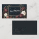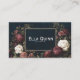 Define your brand with dramatic elegance using this captivating, atmospheric business card. The background is a velvety midnight blue night sky speckled with tiny stars and hints of deep celestial glow, setting a mysterious and sophisticated scene. A thin, simple metallic gold frame elegantly highlights the center, drawing the eye to the core of your information. The borders are richly adorned with abundant, vintage-style floral clusters, showcasing deep burgundy and dusty rose blossoms beautifully mixed with striking creamy white roses and dark green-brown foliage. This artwork blends intense, gothic color and delicate botanical detail, creating a powerful, unforgettable impression that channels both romance and mystery. This business card is ideally suited for a tattoo artist specializing in dark floral or vintage art, a boutique owner selling exclusive, high-fashion accessories, or an independent book store proprietor promoting a sense of dark academia and old-world charm. It would also perfectly suit a spiritual advisor or mystic offering enchanting services or an exclusive event stylist known for moody, romantic themes. The card's captivating dark romance and intricate vintage floral artistry make it versatile for any unique announcement, a dramatic literary-themed party invitation, or a sophisticated gift enclosure.