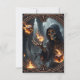 Gothic Flames, den brinnande lerans väktare. Figur i Grim Reaper står mitt i en cirkel av brinnande dice, påminner om små brandkällor och antyder magiska eller apokalyptiska krafter. Mörken och den suddiga bakgrunden förstärker den mystiska och dystra atmosfären.