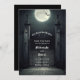 En gammal kyrkogård grind med fullt och fladdermus är bara högerna för den här gotiske festen att spara datuminbjudan. Perfekt för att meddela ditt kommande giftermål och skapar till att spara datumet. Moody och mörk för gothic eller Halloween bröllop.
