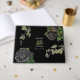 Ett Gothic Halloween-skript bröllop med svart ro och hängviner. En Halloween-design som användor svarta och mörk botaniska blommigtar tillsammans med vintagens manusatrografi. En snyggt gotisk design som passar perfekt för Halloween bröllop-teman. En unik svart gästdesign för ro bröllop i bok. Det finns också möjlighet att matcha bröllopsinbjudningar och andra artiklar i kontorsartiklar.
