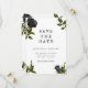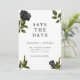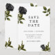 Gothic sparar datumkortet med illustration av svart ro på vit bakgrund. Perfekt för en halloween-säsong bröllop.