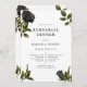 Mötesinbjudan från den gotiska bröllop-middagen med illustration av svart ro på vit bakgrund. Perfekt för en halloween bröllop.