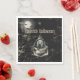 Gothic Haunted House Witch Halloween Costume Party Napkins. De här party-blöjorna har en mörk, en gotisk design med en mistig svart bakgrund. Ornate rustic golden accentuerar kortet ram, medan händelsens titel "Haunted Halloween" visas i ett eerie guld gotiic-skript. En subtil bild av en läskig häxa som blandar hennes magiska potion och en fullt förbättrar den ärliga atmosfären.