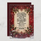 Den här fantastiska inbjudan till julfest har en grov sprit som omger ett ornat, gotiskt ram på mörkens röda bakgrund.