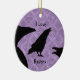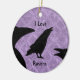 3 korvsilhuetter i svart på lila guth-dammens bakgrund och tryckt på ett anpassade ornament med texten "I kärlek ravens". Formuleringen kan enkelt strykas eller ändras.