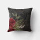 Elegant Gothic inspirerade accent dekorativ kudde, som utfördes i ett svart dammmönster, på bakgrunden och grafiken i röd ros med grönt och svart blomning.