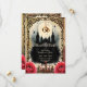This gothic wedding design captures the dark beauty of everlasting love — a black cathedral bathed in moonlight, golden wedding rings suspended like celestial promises, and roses blooming in crimson passion.Perfect for those who believe that love doesn’t have to be light to shine forever.