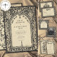 Embrace a dark romantic aesthetic with this gothic ornate parchment vintage design. Featuring an antique parchment background and intricate black scrollwork, it's perfect for a dramatic evening ceremony. This bold look offers a timeless, Victorian feel for your unique day. Created by Simply Farmhouse Press.