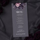 Set the tone for your reception with this gothic plum floral wedding menu, featuring rich mauve and deep purple blooms on a moody charcoal-gray background. Designed to complement dark, romantic, gothic, and celestial-inspired weddings, this elegant menu card adds refined drama to your table setting. The clean typography ensures your courses are easy to read while maintaining a sophisticated aesthetic. Fully customizable, you can personalize the menu text, names, and wedding date to match your celebration perfectly. Ideal for formal dinners, candlelit receptions, or moody autumn and winter weddings. Coordinates seamlessly with the matching Gothic Plum Floral wedding stationery suite.