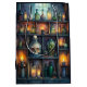 Presentera dina gåvor i gothic stil med den här potionshyllepåsen. Vattenfärgen flaskor, skalle och ljusljus skapar ett unikt sätt att figurera presenter för Halloween, gotiska födelsedagar eller häxiga vänner.