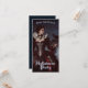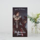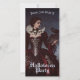 En mystisk kvinna i en krimson och en svart gåva står bland det gamla gravsten under ett glansande fullt måne. Snöre, döskallar, och en svart korv kompletterar hennes eerie elegans, eftersom dimman blundar genom gravens skuggade grind. Halloween-inbjudan