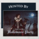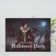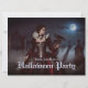 En mystisk kvinna i en krimson och en svart gåva står bland det gamla gravsten under ett glansande fullt måne. Snöre, döskallar, och en svart korv kompletterar hennes eerie elegans, eftersom dimman blundar genom gravens skuggade grind. Halloween-inbjudan
