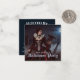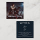 En mystisk kvinna i en krimson och en svart gåva står bland det gamla gravsten under ett glansande fullt måne. Snöre, döskallar, och en svart korv kompletterar hennes eerie elegans, eftersom dimman blundar genom gravens skuggade grind. Halloween-inbjudan