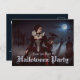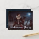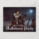En mystisk kvinna i en krimson och en svart gåva står bland det gamla gravsten under ett glansande fullt måne. Snöre, döskallar, och en svart korv kompletterar hennes eerie elegans, eftersom dimman blundar genom gravens skuggade grind. Halloween-inbjudan