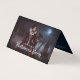 En mystisk kvinna i en krimson och en svart gåva står bland det gamla gravsten under ett glansande fullt måne. Snöre, döskallar, och en svart korv kompletterar hennes eerie elegans, eftersom dimman blundar genom gravens skuggade grind. Halloween-inbjudan