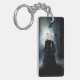 Vita, högmodiga kvinnor i en vacker gotisk korseterad segerrik svart klänning, Ravens, mist och skog runt henne.
