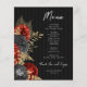 Gothic Red and Black Blommigt Bröllop Menu Flyer