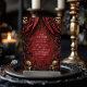 Gå in i en kväll av mörk elegans med den här vackra röda gardinen Halloween soirée-designen. Den har dramatiska sammetsskrapor, svart ro och guld-adorerade döskallar och anger perfektens ton för ett förhatligt glamoröst firande. Anpassa med dina detaljer och vara värd för en oförglömlig kväll av mystik och makaber.