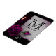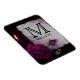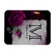 En flex-magnet med personlig i monogram med ett bra utseende. Ett gammalt betesområde pappert med tips om lila-röd runt kant. En magenta ro i fullt blomning, en rosenknopp, ett ljus och ett silver-skåp på en mörkens burgundbakgrund skapar en vacker, mörk och mystisk gotisk design. Anpassa med ditt monogram brev och namn.