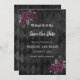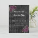 Spara datumkortet med "Död", "mörk lila ro" och en svart bakgrund i mönster. Skripttypografi. Anpassa med ditt eget foto.