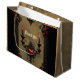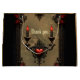 Gothic Romantik: Gömt passion. Ett ornat ram i det gotiska stil, designat med svart filigree av bra, med delikat linjer och invecklade detaljer som påminner om gamla, ornerade karvingar. Inbäddad i ram är smart röd ros, deras snabba blommar som skapar en pulserande kontrast till mörkens filigree, vilket understryker den romantiska stämningen. Hjärtformade prydnadsföremål pryder hörnen och kant i ram. Två svarta ljus med röda lågor glöder mjukt, vilket ger bild en varm, något mörk beröring.