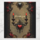 Gothic Romantik: Gömt passion. Ett ornat ram i det gotiska stil, designat med svart filigree av bra, med delikat linjer och invecklade detaljer som påminner om gamla, ornerade karvingar. Inbäddad i ram är smart röd ros, deras snabba blommar som skapar en pulserande kontrast till mörkens filigree, vilket understryker den romantiska stämningen. Hjärtformade prydnadsföremål pryder hörnen och kant i ram. Två svarta ljus med röda lågor glöder mjukt, vilket ger bild en varm, något mörk beröring.