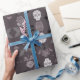Elegant gothic Wrapping paper featuring bats, floral sugar skills, and blooming roses on a deep plum background. Perfect for spooky-chic gifts with a touch of dark romance!