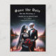 Gothic Skeleton Couple Navy Save the Date Meddelande Vykort